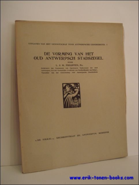 Originele uitgeversomslag papieromslag en originele titelpagina met vignet, 220 x 285mm., 47pp., VII los ingevoegde bijlagen z/w. Uitgaven van het Vennootschap voor Antwerpsche Geschiedenis. I. Genummerd exemplaar binnen een oplage van 300, gesigneerd door de auteur, In goede staat.