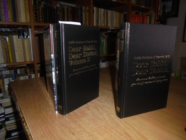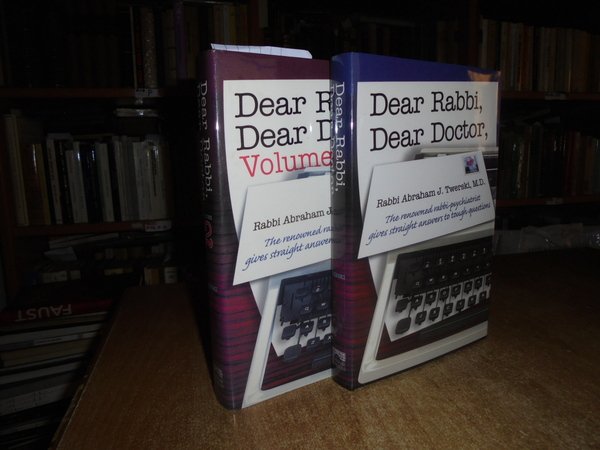 Rabbi J. ABRAHAM TWERSKI. United States, A Shaar Press Publication, 2006/2007. Dear Rabbi, Dear Doctor. The renowned rabbi psychiatrist gives straight answers to tough questions. 2 volumi in-8°, similpelle edit. con titoli in oro sui piani e ai dorsi, sovracopertine. viii, 325 pp.; 367 pp. Come nuovi con testo in inglese. Uff. B - I - 4
