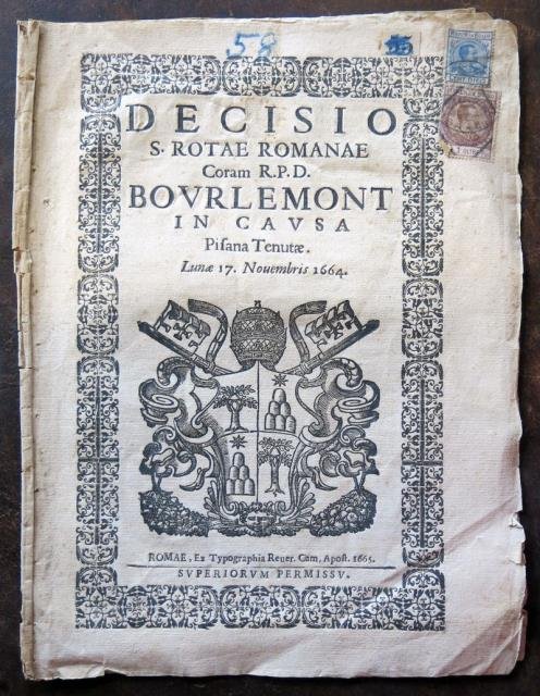 Decisio S. Rotae Romanae Coram R. P. D. Bourlemont in causa Pisana Tenutae. Lunae 17. Novembris 1665.