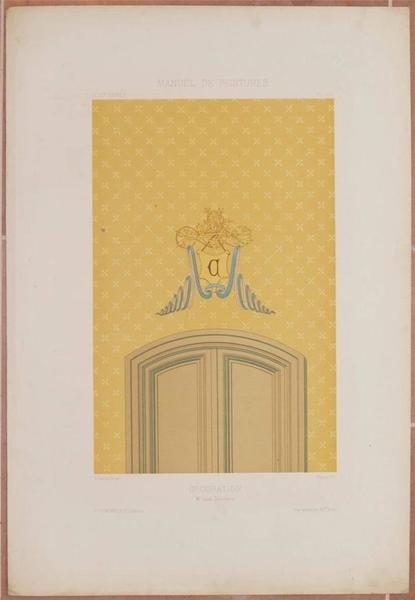 Bella cromolitografia del 1866 circa tratta dal "Journal manuel de peintures appliques a la decoration" diretto da Pierre Chabat per la decorazione di interni. L'incisione mostra una decorazione. In buone condizioni. Beautiful chromolythography of 1866 circa taken from the "Journal manuel de peintures appliques a la decoration" directed by Pierre Chabat for internal decoration. The planche shows a decoration. In good conditions.TECHNIQUE: Chromolytography AUTHOR: Lefevre PAGE SIZE: cm 46x31,5 PRINT'S SIZE: cm 29x19 PERIOD: 1866 circa CONDITION: good conditions with some foxings and tears in the edges