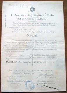 Decreto Del Ministro Segretario Di Stato Per Le Poste E I Telegrafi