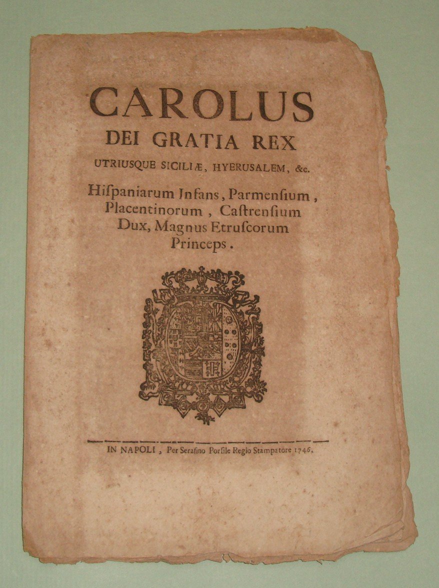 Decreto pubblicato a Napoli il 3 Agosto 1746.