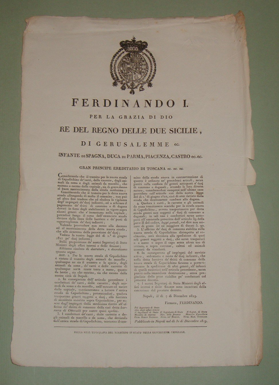 Decreto pubblicato a Napoli il 7 Dicembre 1819.