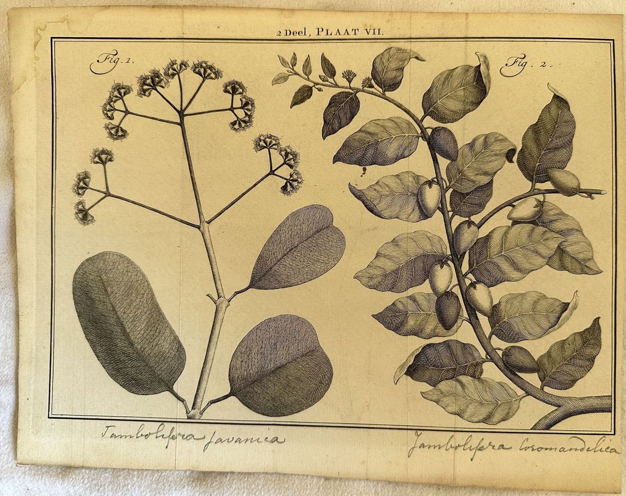 Finissima incisione tratta dalla monumentale opera di botanica "Natuurlyke historie" del naturalista olandese Maarten Houttuyn (1720-1798). Nomi delle specie manoscritti a matita. Atlante: Natuurlyke historie of uitvoerige Beschryvingder Dieren Planten Autore: Maarten Houttuyn (1720-1798) Data: 1761/1773 Tecnica: Acquaforte Dimensione del foglio: 200x262 mm Dimensione incisione: 167x243 cm Condizioni: Buone. Fioriture. Very fine engraving taken from the monumental work of botany "Natuurlyke historie" by the durch engraver Maarten Houttuyn (1720-1798). Names of the species handwritten with pencil. Atlas: Natuurlyke historie of uitvoerige Beschryvingder Dieren Planten Author: Maarten Houttuyn (1720-1798) Date: 1761/1773 Technique: Etching Leaf Dimension:200x262 mm Engraving Dimension:167x243 cm Conditions: Good conditions. Foxing