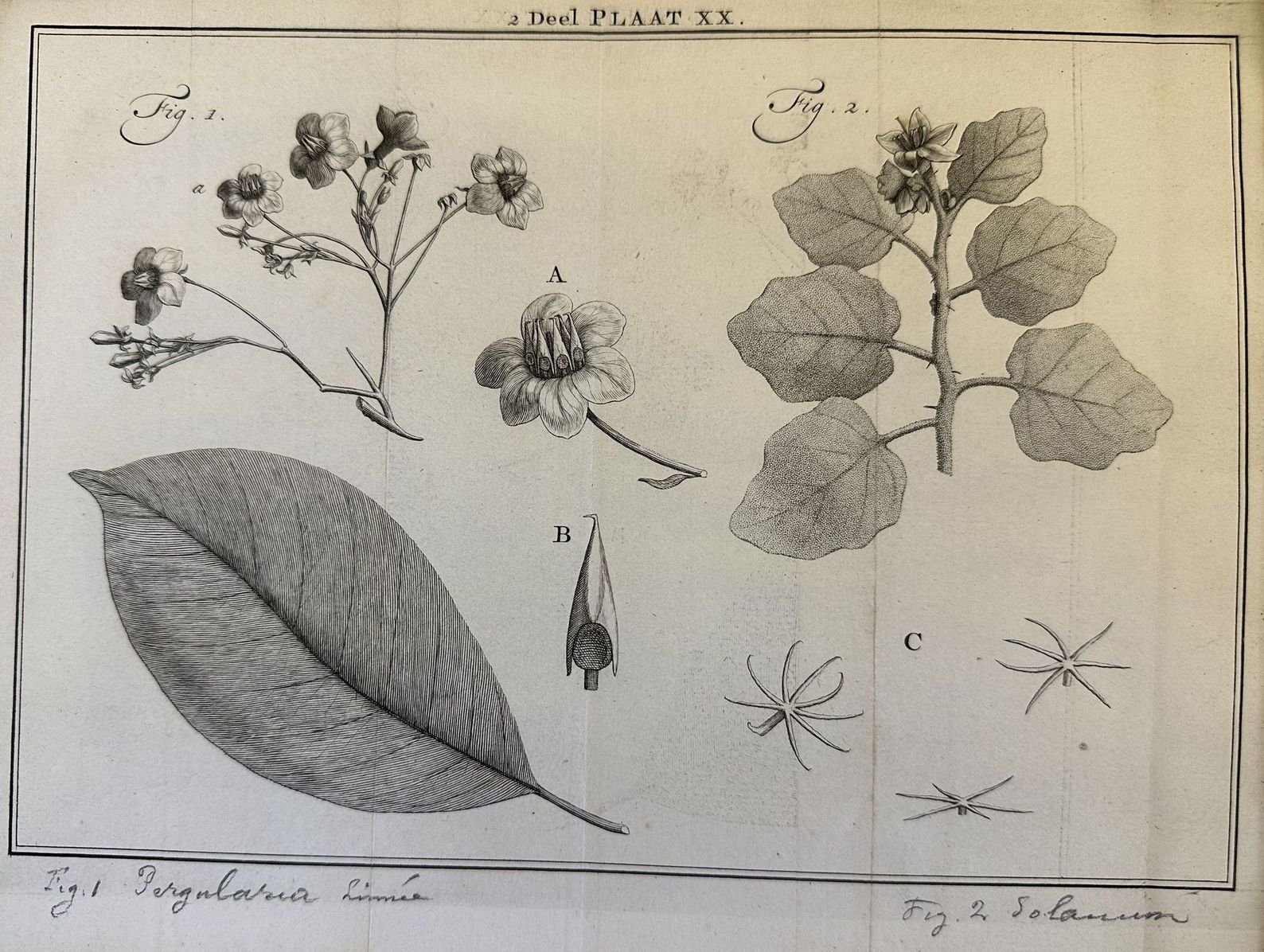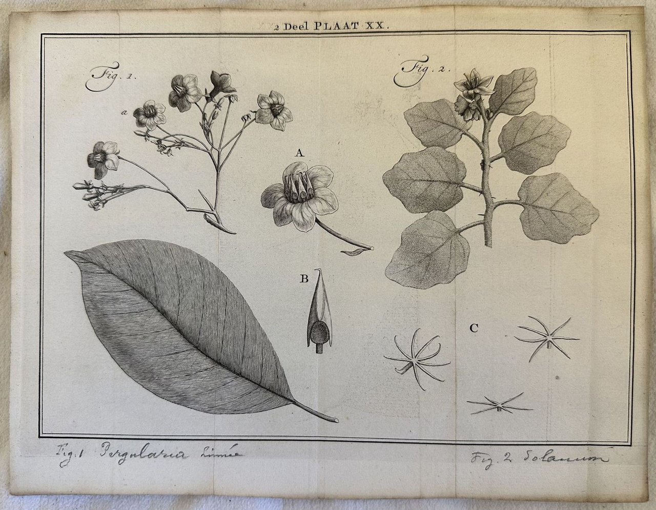 Finissima incisione tratta dalla monumentale opera di botanica "Natuurlyke historie" del naturalista olandese Maarten Houttuyn (1720-1798). Nomi delle specie manoscritti a matita Atlante: Natuurlyke historie of uitvoerige Beschryvingder Dieren Planten Autore: Maarten Houttuyn (1720-1798 Data: 1761/1773 Tecnica: Acquaforte Dimensione del foglio: 200x258 mm Dimensione incisione: 170x240 cm Condizioni: Buone. Fioriture. Very fine engraving taken from the monumental work of botany "Natuurlyke historie" by the durch engraver Maarten Houttuyn (1720-1798). Names of the species handwritten with pencil. Atlas: Natuurlyke historie of uitvoerige Beschryvingder Dieren Planten Author: Maarten Houttuyn (1720-1798) Date: 1761/1773 Technique: Etching Leaf Dimension:200x258 mm Engraving Dimension:170x240 cm Conditions: Good conditions. Foxing