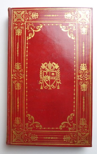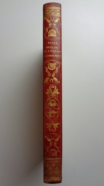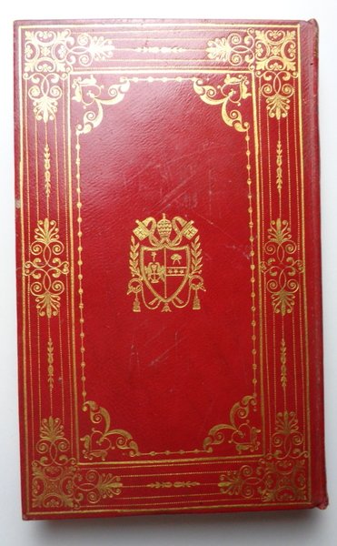 Un volume (13,5x22 cm) di VIII-359-(1) pagine. Legatura francese in piena pelle rossa, grande cornice dorata ai piatti, con fregi, angoliere e fili dorati, al centro lo stemma papale di GREGORIO XVI. Labbra con dorature; carte di risguardia marmorate scure; tagli dorati. Ottime condizioni. Boyer (1766-1842), teologo reazionario, si schierò contro le idee di Lamennais craignant qu'elles favorisassent lathéisme politique renversant l'autorité et l'unité de lÉglise, se rapprochant de la méthode protestante. Grande sintonia con Papa Gregorio XIII, al quale invia l'esemplare di dono di questa suo opera. Esposto alla Mostra La rilegatura d'arte antica pontificia (Museo civico di Albano, 1988). V. anche per esemplari simili Legature papali da Eugenio IV a Paolo VI (Biblioteca vaticana, 1977).