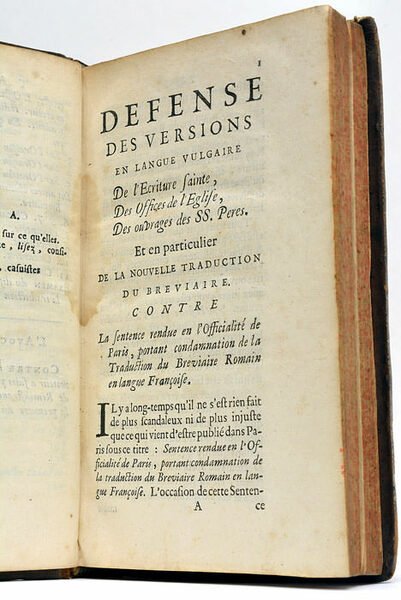 Défense des Versions de l’Ecriture Sainte, des Offices de l’Eglise, et des Ouvrages des Pères, et en particulier de la nouvelle traduction du Bréviaire. Contre la Sentence de l’Official de Paris du 10 avril 1688. Avec l’Avocat du Public contre la Requeste du Promoteur du III May.