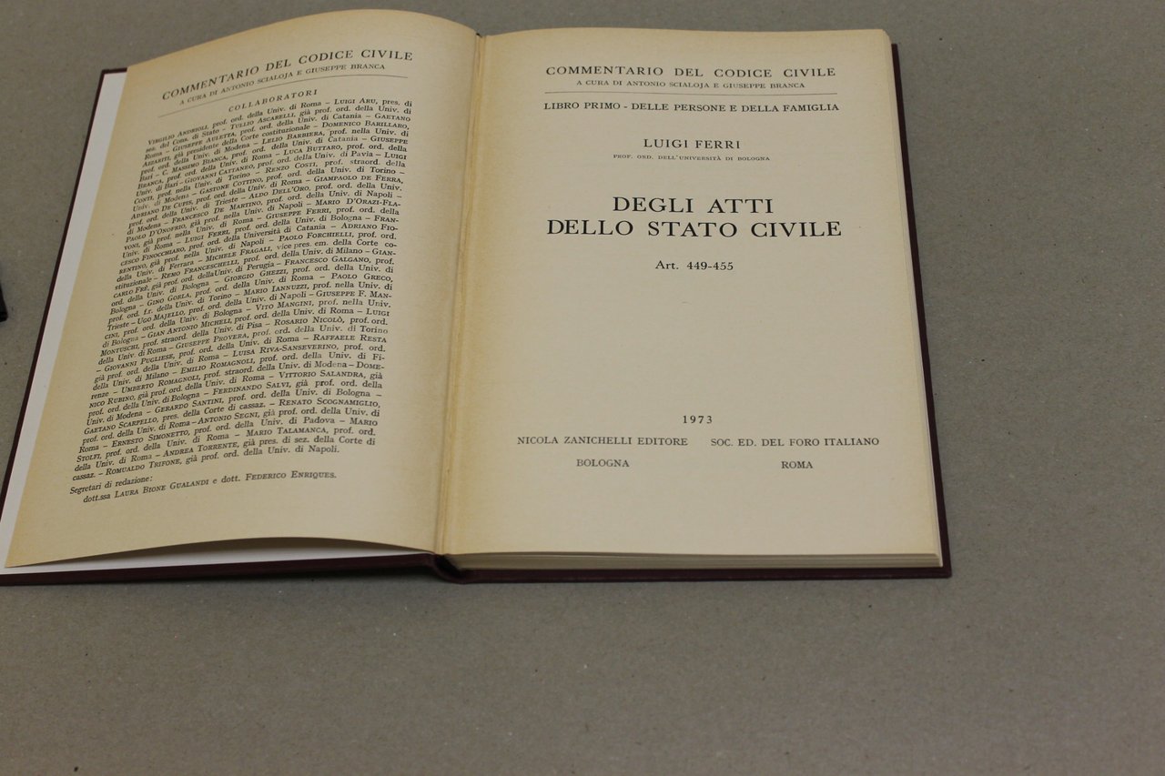Luigi Ferri Degli atti dello stato civile. Bologna, Zanichelli 1973 italiano, 24,5 17 pp.150 Libro primo - Delle persone e della famiglia. Degli atti dello stato civile, Art. 449-455.