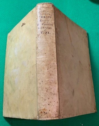 In 4° (25x18 cm); (8), 336, (4), (8 b.) pp. Legatura coeva in piena pergamena con titolo manoscritto ma mano coeva al dorso. Piatti interni e fogli di sguardia, foderati con bella carta coeva a motivi floreali. Solo secondo volume. Stemma araldico del cavaliere Alvise Sagredo sul frontespizio. L'opera contiene, compresi nella numerazione delle pagine e nella segnatura, numerosi ritratti calcografici dei personaggi trattati. Ogni ritratto vede una biografia del personaggio accompagnata da un sonetto in versi italiani e latini, composti da alcuni dei maggiori rappresentati del barocco italiano. Prima edizione non comune, del solo secondo volume di questa celeberrima raccolta di biografie di letterati illustri, scritta dal noto letterato ed avvocato napoletano, barone di Pianura e canonico, Lorenzo Crasso (1623-1691). L'autore, appartenente ad una nobile famiglia partenopea, possedeva nella sua biblioteca di famiglia nel palazzo di Vicolo San Paolo, un enorme quantità di volume a stampa e manoscritti, fra i quali la più grossa collezione di manoscritti del Cavalier Marino che però andarono poi dispersi, insieme alla biblioteca stessa, nei secoli seguenti. Crasso prese spunto per le sue biografie proprio dall'ingente materiale conservato presso la sua biblioteca e rifacendosi all'opera di Giovio, pensò di realizzare un'opera che in qualche modo, anticipa l'idea di un'enciclopedia bibliografica. Le biografie, pur essendo, precise ed in genere corrette, non presentano le informazioni sulle fonti alle quali il Crasso si rifà. Molto belli i ritratti. Annota la Vinciana 3601: "Biobibliografia importante per le preziose notizie di letterati, scienziati, medici, matematici, cosmografi, filosofi, religiosi, ecc. che hanno lasciato edito o inedito almeno uno scritto. Alla fine di ogni biografia e riportato quasi sempre l'epitaffio scritto sulla tomba dei biografati, seguito da versi encomiastici". Rif. Bibl.: Vinciana 3601; ICCU IT\ICCU\TO0E\007450.
