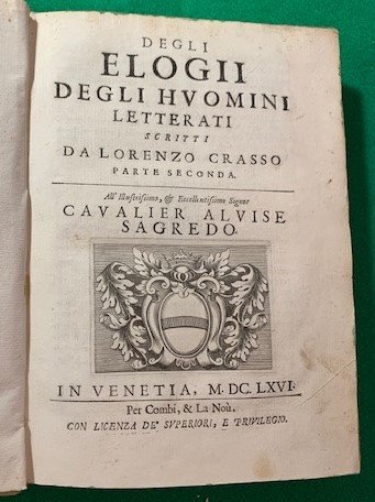 Degli Elogii degli Huomini scritti da Lorenzo Crasso, Parte Seconda, All'Illustrissimo et Eccellentissimo Signor Cavalier Alvise Sagredo.