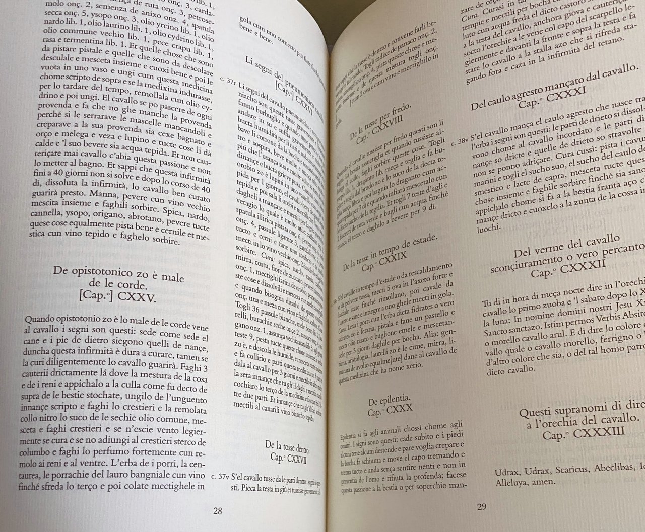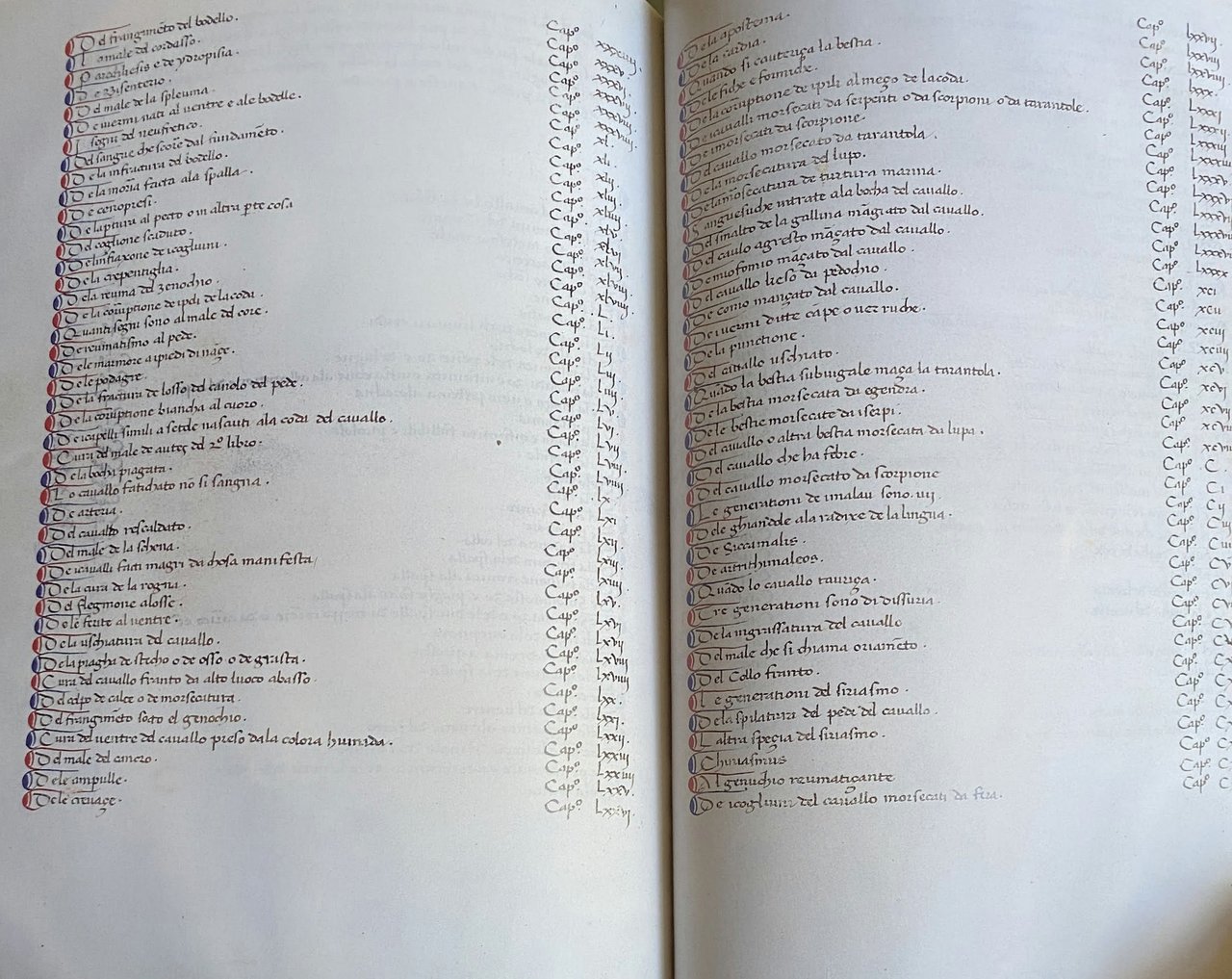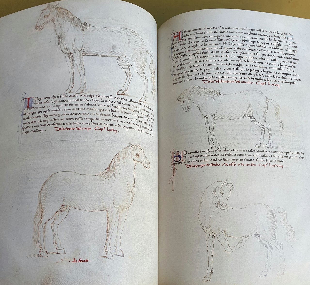 Soggetti: Collezionismo Edizioni pregiate da collezione Equitazione Medicina naturale Tempo libero Animali domestici Cura Cavalli Grandi opere Varia Manoscritti antichi Corse Codici Veterinaria Etologia Scienze Bibliofilia Manuali Facsimile Ristampe anastatiche Cavallo Razze Scuderie ferraresi Rinascimento Corti Sangue scelto Stalloni Fattrici Veloci Corridori Italia Europa Stallone Scuderia Maniscalco Garretto Salute Pratica Studio Ippocrate Damasceno Galeno Bestiario Trattati Scuola salernitana Superstizione Magia Malattie equine Rimedi naturali Affezioni Operazioni Disegni a penna Anatomia Dialetto veneto Lessico greco latino Imbrigliare Passione Documenti Guardaroba Archivio Paggio Correre Fantini Alimentazione Cibo Ferite Cadute Benessere Trucchi Consigli Biologia Puledri Pony Razza Specie Storia Aneddotica Bibliografia Riferimento Libri illustrati fuori catalogo Incunaboli Bibliologia Stampa Mascalcia Maniscalchi Ferratura Arte Zoccoli Usura Equilibrio Cavalleggeri Doma Monta inglese maremmana Americana Addestramento Butteri Sella Atleta Cavaliere Fantino Spettacoli Cavalcate Pareggiatore Piedi Mestieri Ippiatria Nutrizione Denti Riproduzione Muscoli Dolore Massaggio Allenamento Cavalieri Giovani Problematici Formazione Groom Artiere Maneggio Eventi equestri Sellaio Allevatori Gare ippiche Mascalcia Acqua fredda Bagno Cocchiere Vino Coglioni Cresta Calda Aceto Mele Olio Vino Farina Febbre Gambe Gola Grasso Umidità Orecchie Unghie Male Mirra Morsicatura Narici Piaghe Puledro Spalla Taglia Tarantola Morsi Zecche Mosche Unguento Urina Vecchio Ventre Muscolatura Altezza Garrese Andature Arti Lunghi Coda alta Attaccata Bassa Collo Trotto Fattrici Groppa Mesomorfo Morfologia Mantello Baio Morello Sauro Nevrite Purosangue Roano Saltatore Salto Ostacoli Tiro Soma Sport equestri Tarpan Testa Torace Trottatore Galoppo Briglia Castigo Natura Cavalcare Vermi Estate Bayo Ferrigno Tosse Reumatismo Ginocchio Latte Peli Polmoni Infermità Freno Mulo Bocca aperta Punture Serpenti Sintomi Polvere Tetano Avena Fieno Dieta Mucose Erba Calcio Vita Morte Morbilità Malattia Cheval Hippiatrie Criniera Manutenzione Tenuta Collectibles editions Horse riding Natural medicine Free time Pets Care Horses Miscellaneous Ancient manuscripts Racing Codices Veterinary medicine Ethology Science Bibliophilia Manuals Anastatic reprints Breeds Ferrarese stables Renaissance Courts Selected blood Stallions Mares Fast Runners Italy Europe Stable Farrier Hock Health Practice Study Hippocrates Damascene Bestiary Treatises Superstition Magic Equine diseases Natural remedies Conditions Operations Pen drawings Anatomy Venetian dialect Bridle Passion Documents Wardrobe Archive Page Running Jockeys Nutrition Food Wounds Falls Well-being Tricks Advice Biology Foals Ponies Breed Species History Anecdotes Bibliography Reference Illustrated books out of print Incunabula Bibliology Print Farrier Farriers Shoeing Hooves Wear Balance Cavalry Taming English maremmana American Training Saddle Athlete Knight Jockey Shows Rides Jockey Feet Professions Nutrition Teeth Reproduction Muscles Pain Massage Training Problem Riders Craftsman Riding school Equestrian events Saddlemaker Breeders Races Farrier Cold water Bath Coachman Wine Balls Crest Hot Vinegar Apples Oil Wine Flour Fever Legs Throat Fat Humidity Ears Nails Pain Myrrh Biting Nose Sores Foal Shoulder Size Tarantula Bites Ticks Flies Ointment Urine Old Belly Muscles Height Withers Gaits Long Limbs Tail High Set Low Neck Trot Mares Rump Mesomorph Morphology Coat Bay Black Chestnut Neuritis Thoroughbred Roan Jumper Show jumping Draft Pack equestrian Tarpan Head Chest Trotter Gallop Bridle Punishment Nature Riding Worms Summer Iron-haired Cough Rheumatism Knee Milk Hair Lungs Infirmity Brake Mule Open Mouth Snake Bites Symptoms Dust Tetanus Oats Hay Diet Mucous Grass Calcium Life Death Morbidity Mane Maintenance Estate