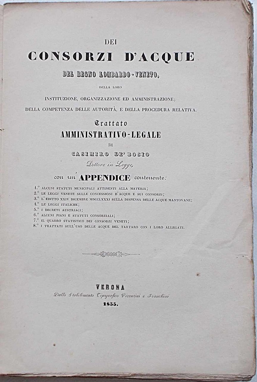 Dei Consorzi d'Acque del Regno Lombardo-Veneto della loro istituzione, organizzazione ed ammnistrazione…