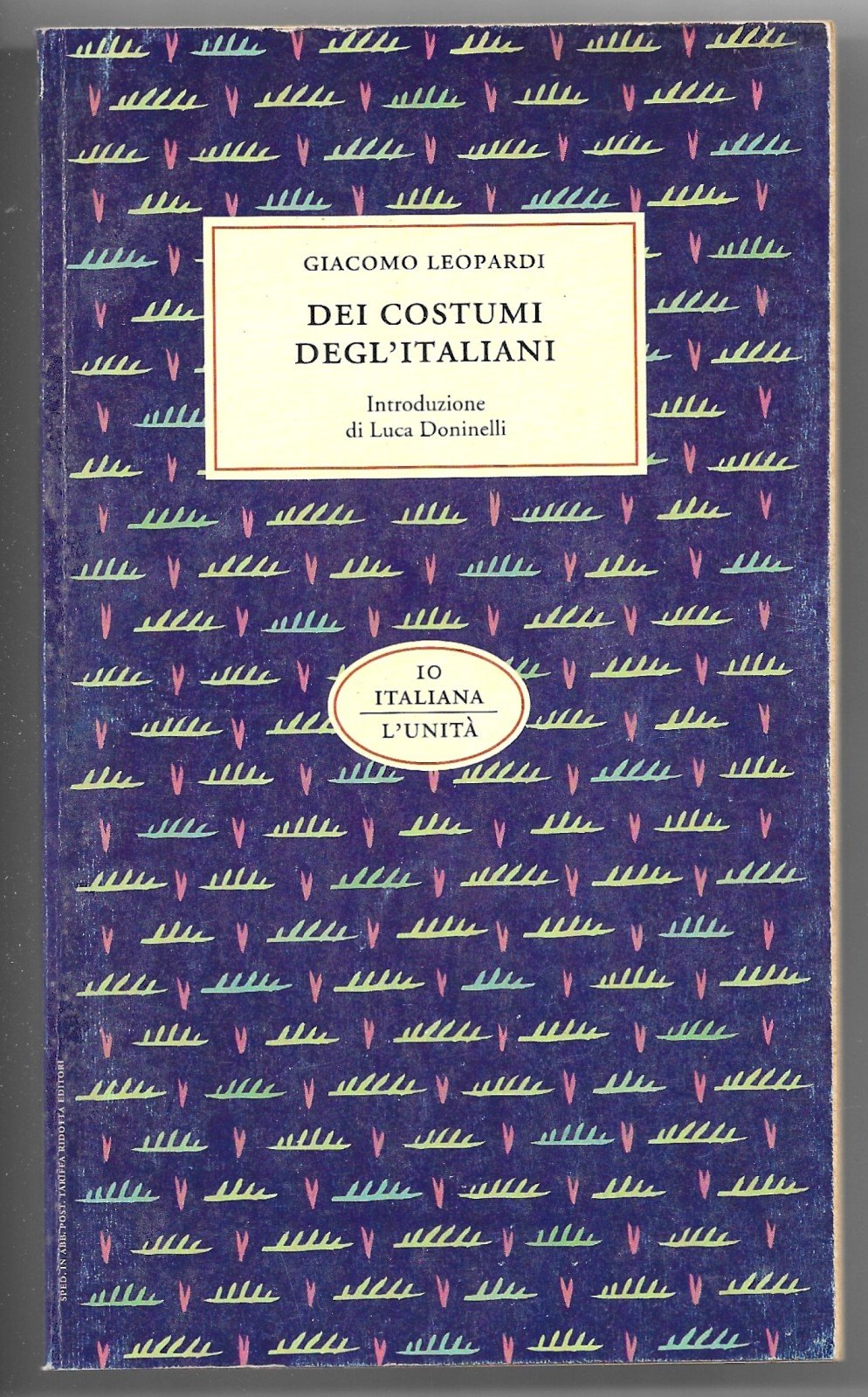 Libro vintage. Argomento: Saggio. Autore: Leopardi Giacomo. Editore: L'Unità. Luogo: n. d. Anno: 1993. Formato: in-16°. Pagg: 60. Legatura: Brossura. Collana: I libri dell'Unità. Conservazione: Discreta. Ordinario segno del tempo.