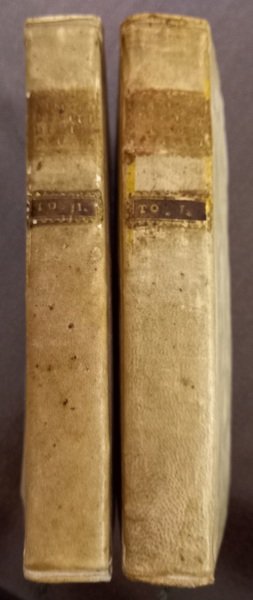 2 volumi, 8°, pergamena coeva, tass. colorati con tit. in oro ai dorsi, pp. 400 + 334. Bei frontespizi incisi in rame, inquadrati in cornicette floreali ornam. Fresco e nitido esemplare. Alberto de Simoni (Bormio 1740 - Ardenno 1822) noto giureconsulto, collaborò alla redazione dei codici civile e penale dopo la proclamazione della Repubblica Italiana nel 1802. Questo Trattato rimane la sua principale opera, nella quale riprende i temi di fondo del Dei Delitti e delle Pene del Beccaria ma si discosta dalle teorie politico sociali dell’illuminismo giuridico. De Simoni si richiama alla tradizione del diritto romano e del diritto comune, proponendo un recupero funzionale alle esigenze della legislazione contemporanea, di quegli elementi romanistici e consuetudinari che non fossero con essa in contrasto. La parte più interessante dell’opera è costituita dall’analisi attenta degli elementi psicologici delle diverse categorie di delitti, che anticipa in nuce temi della psicologia giuridica. Rara edizione originale.