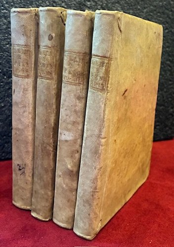 16mo (cm. 14,2), 4 Voll.; antiporta allegorica, XX-270 pp.; 236 pp.; 255(1) pp.; 231(1) pp. Legature coeve in pergamena rigida con titolo oro su tassello dipinto al ds. Prima pagina dell’introduzione con alcune perdite di testo supplite con grafia di antica mano. Lievi sporadiche fioriture. Nel complesso esemplare in ottimo stato di conservazione. Cfr. Firpo, n. 26.