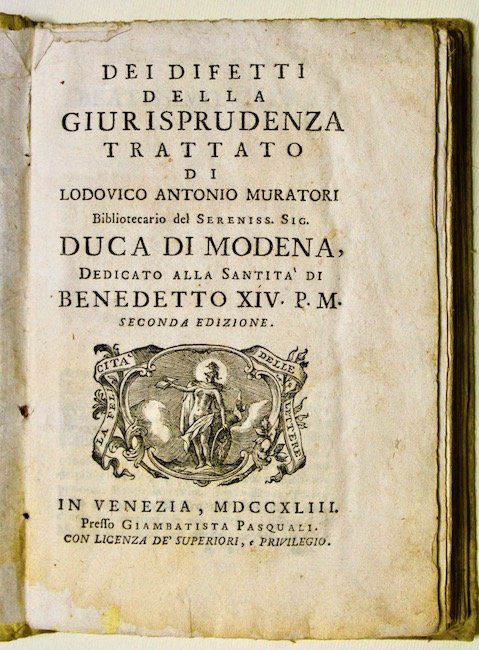 Dei difetti della giurisprudenza Trattato di Ludovico Antonio Muratori bibliotecario del Duca di Modena. Dedicato alla Santità di Benedetto XIV P. M. Seconda edizione