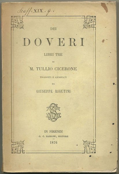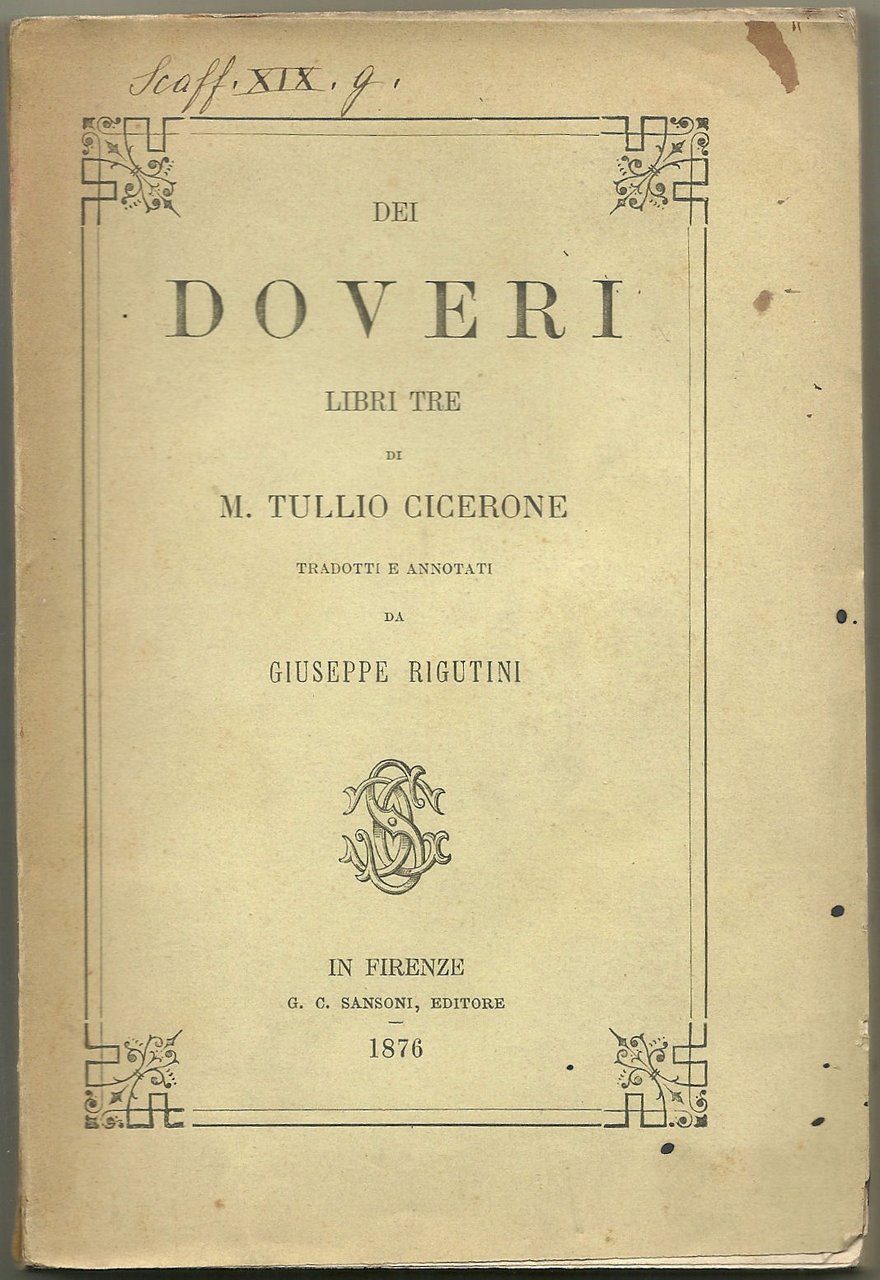 Dei doveri. Libri tre di M. Tullio Cicerone tradotti e annotati da Giuseppe Rigutini.
