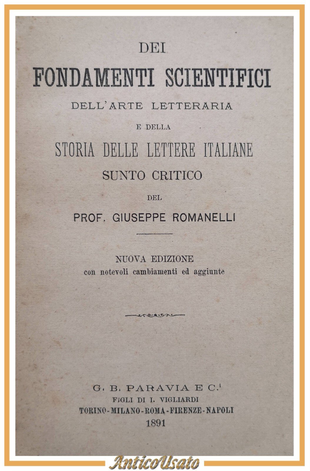 DEI FONDAMENTI SCIENTIFICI ARTE LETTERARIA E STORIA LETTERE ITALIANE 1891 Libro