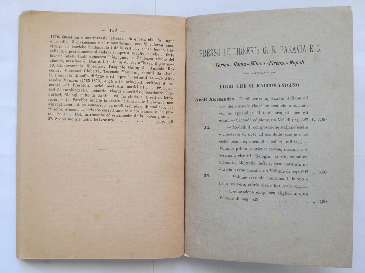 Editore G. B. Paravia & C., 1891. 152 pagine. Copertina non editoriale in cartoncino muto. Stato di conservazione: molto buono (pagine ingiallite, manca la copertina originale) Libro antico saggistica letteraria
