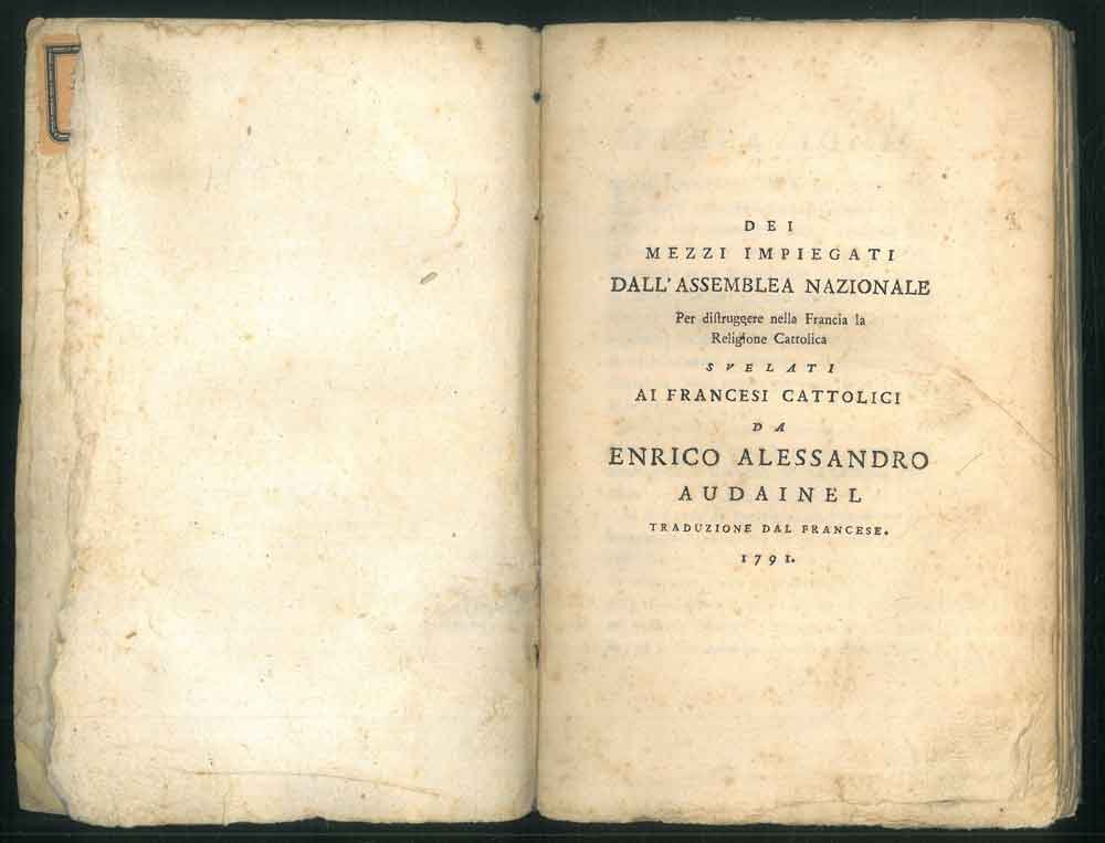 Dei mezzi impiegati dall'Assemblea nazionale per distruggere nella Francia la religione cattolica svelati ai francesi cattolici da Enrico Alessandro Audainel. Traduzione dal francese.