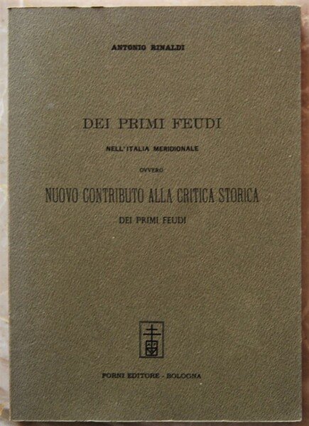 DEI PRIMI FEUDI NELL'ITALIA MERIDIONALE OVVERO NUOVO CONTRIBUTO ALLA CRITICA STORICA DEI PRIMI FEUDI.