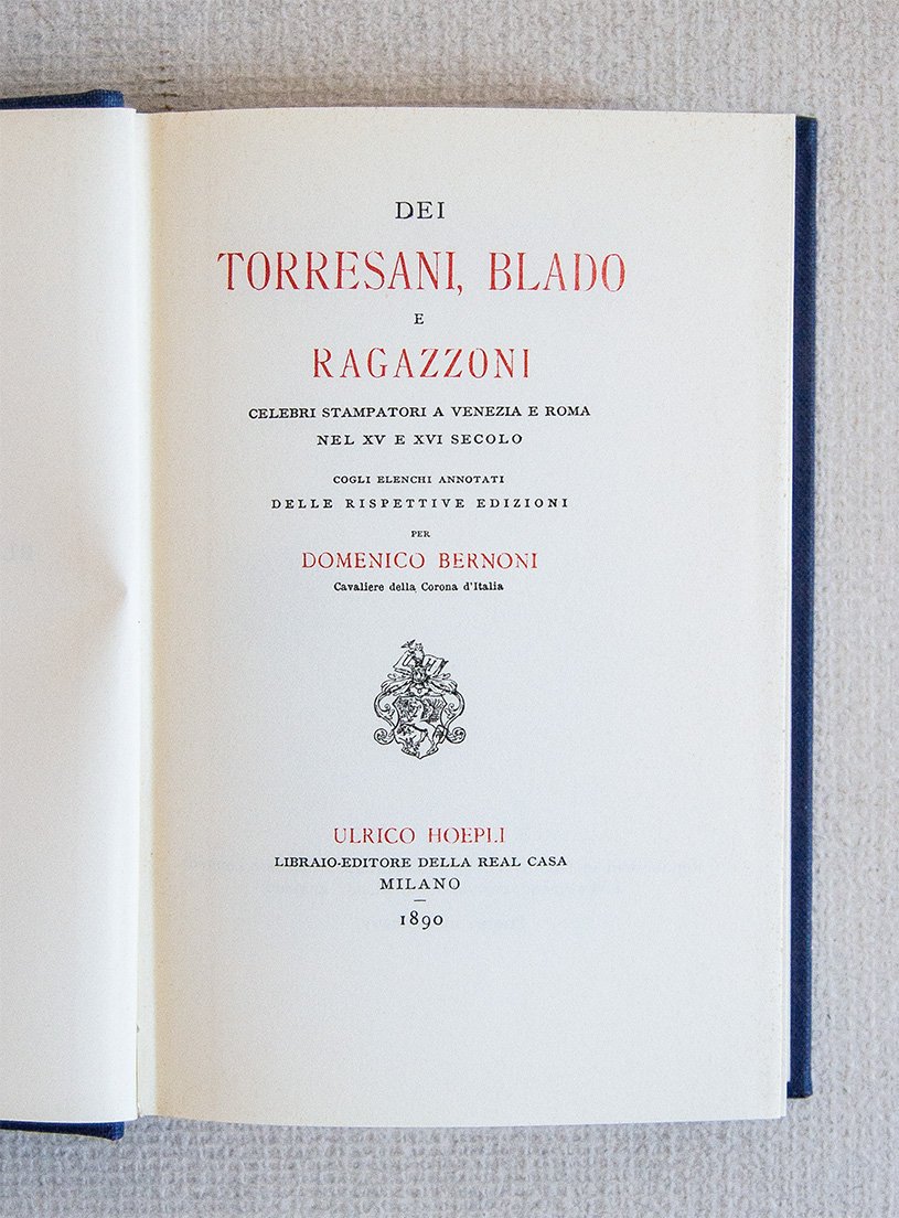 Dei Torresani, Blado e Ragazzoni celebri stampatori a Venezia e a Roma nel XV e XVI secolo.