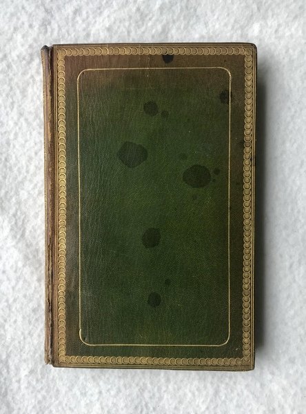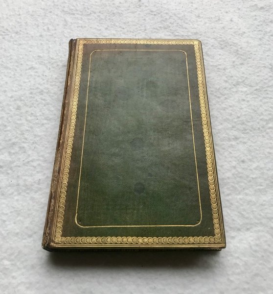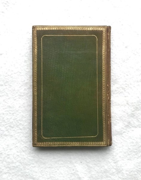 LEGATURA LODIGIANI, COPIA DEL CONTE GIUSEPPE SEBREGONDI, NIPOTE DELL’AUTORE [LEGATURA] PRIMA EDIZIONE. In-8, pp. 142 (2). Preziosa legatura coeva firmata da Luigi Lodigiani (bottellino ovale di carta rosa al verso dell’angolo disopra della prima carta di guardia superiore: “Lodigiani relieur de S.A.I., i.e. “Sua Altezza Imperiale”) in pieno marocchino verde e fregi in oro. Piatti con tre cornici concentriche: l’esterna a doppio filetto; accanto, la centrale a palmette sovrapposte e la cornice interna ad angoli arrotondati e con finissima decorazione a mo’ di fibre di corda intrecciate. Morsi a doppio filetto e unghiature decorate con motivi floreali. Dorso scolorito riccamente dorato, caselle riempite con geometrie di cerchi interconnessi e divise da greche e filetti, con titolo, luogo e data impressi a caldo a piede e coda. Sguardie marmorizzate e tagli dorati. Qualche macchia al piatto disopra, cerniera superiore un poco usurata, con strappetto. Ex donis del Conte Avv. Giuseppe Sebregondi, “nipote dell’autore”, datato Villa Camilla, Domaso, 12 luglio 1922, a personaggio non identificato, forse “F. Solari” (poco leggibile). Buona copia, pulita e marginosa.