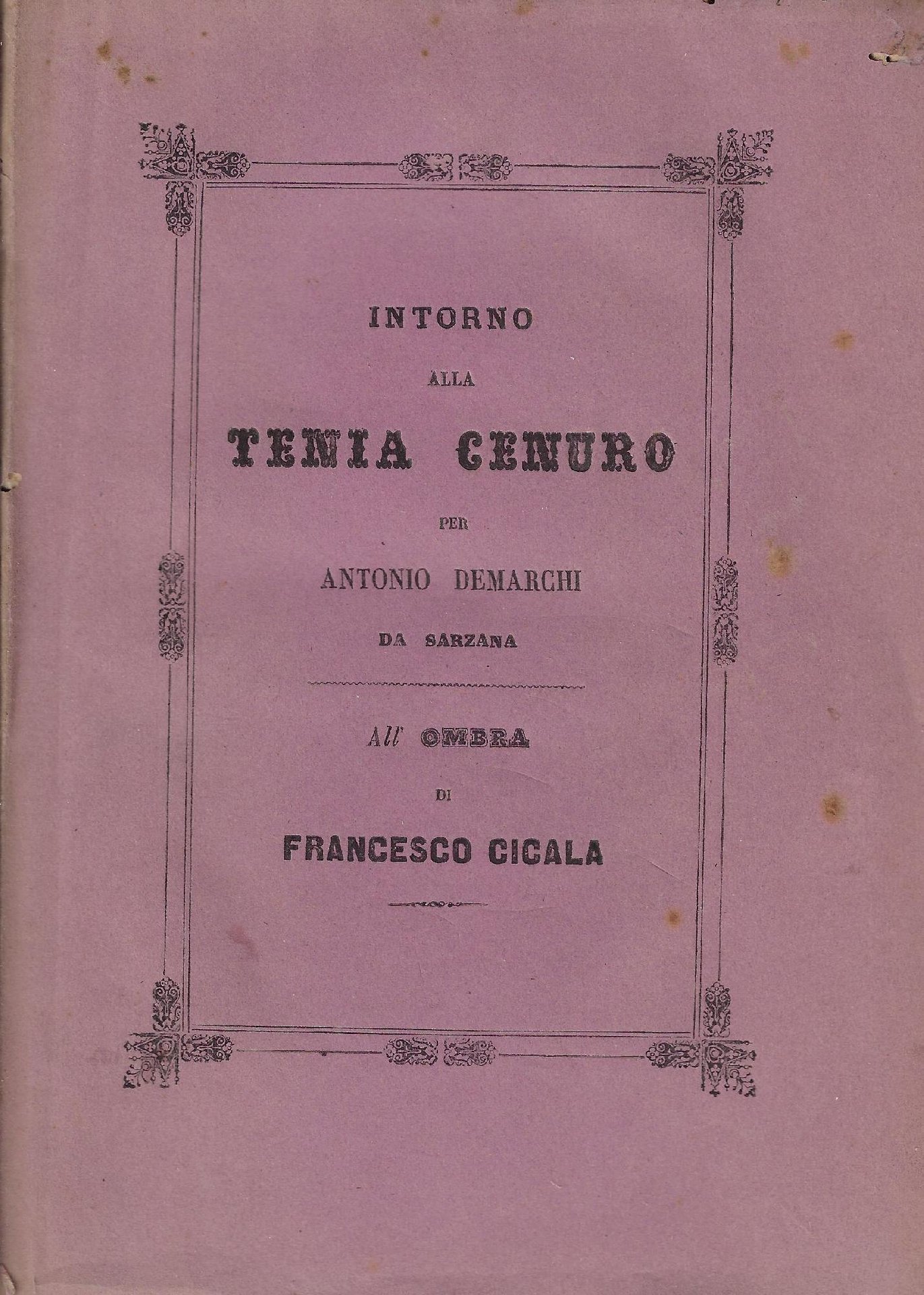170 p. ; 21 cm. Buono (Good) copertina con lievi fioriture, piccole mancanze e strappetti, dorso brunito con evidenti segni del tempo, vecchi fori di tarlo sul margine superiore che interessano tutto il libro, ottima leggibilità.