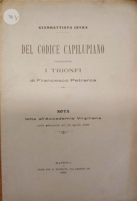 DEL CODICE CAPILUPIANO contenente i Trionfi di Francesco Petrarca. Nota letta all'Accademia Virgiliana nella adunanza del 15 Aprile 1900.