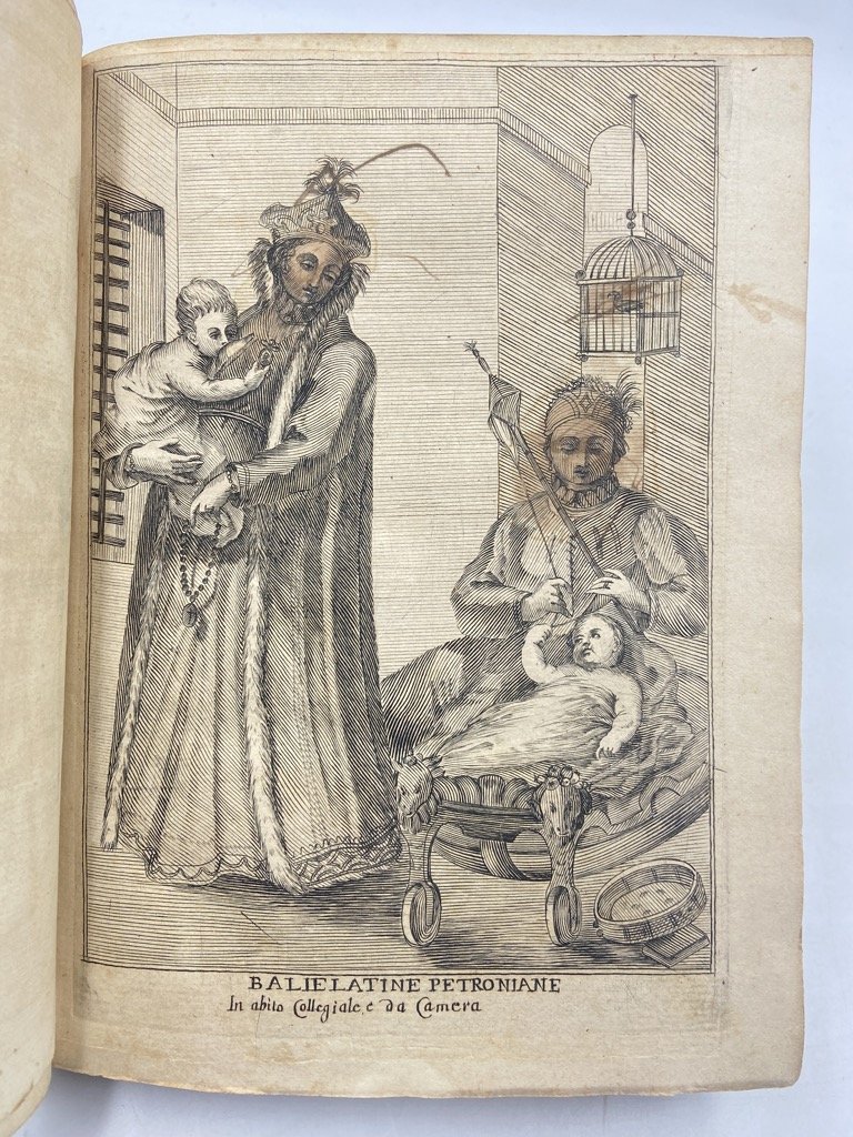 - Esemplare genuino, alcune bruniture sulle carte, macchie d'inchiostro su una delle tavole (tentata cancellatura dei volti delle balie); discreto-buono stato nel complesso.