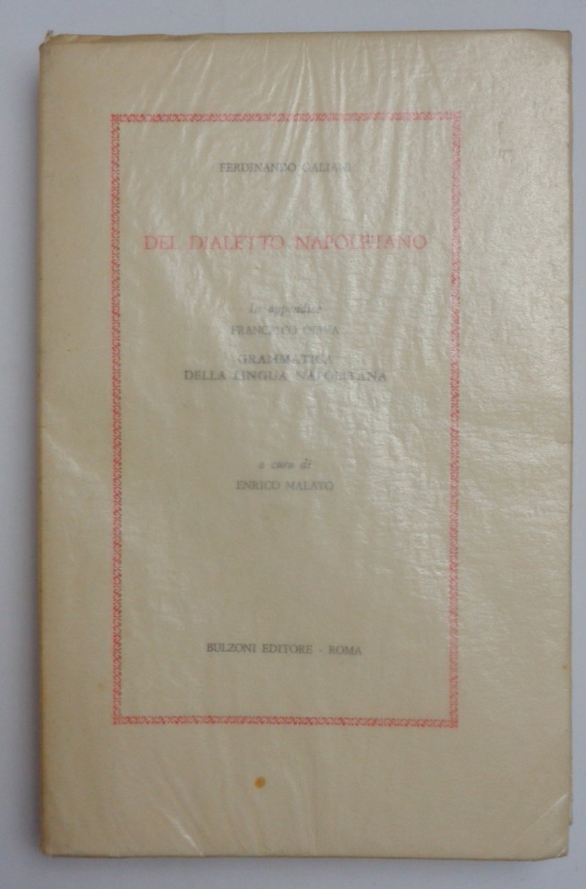Un volume di XXIII-380 pagine, brossura editoriale con sovracoperta e velina protettiva trasparente. Dimensioni: 14,5x22,5 cm. In barbe. Ottime condizioni. In appendice la "Grammatica della lingua napoletana" di Francesco Oliva. A cura di Enrico Malato.