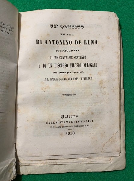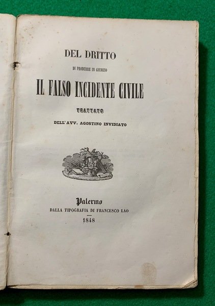Del diritto di procedure in giudizio, Il falso incidente civile, trattato; Unito a: Di questo pensamento di Antonino de Luna, coll'aggiunta di due contrarie sentenze e di un discorso filosofico-legale che porta per epigrafe Il prestigio de' Libri;