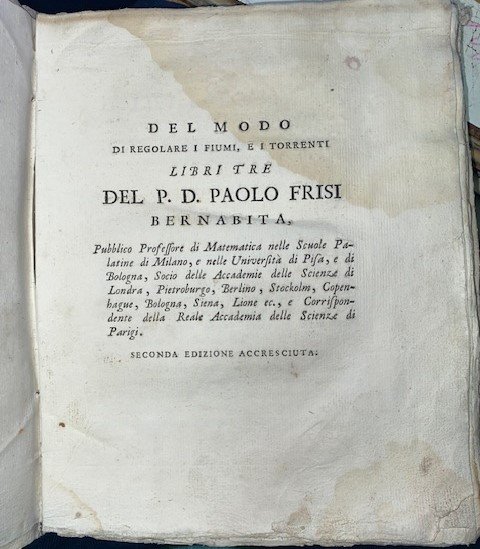 DEL MODO DI REGOLARE I FIUMI E I TORRENTI , LIBRI 3 del P.D. Paolo Frisi Bernabita. Seconda edizione accresciuta