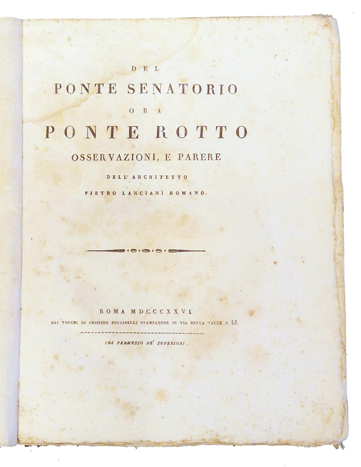 Del Ponte Senatorio ora Ponte Rotto osservazioni, e parere dell'architetto Pietro Lanciani romano.