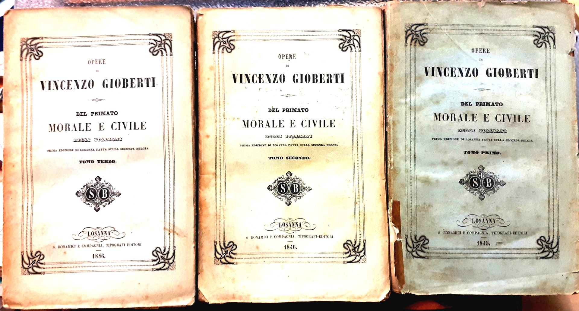 DEL PRIMATO MORALE E CIVILE DEGLI ITALIANI. Prima edizione di Losanna fatta sulla seconda Belgia.,