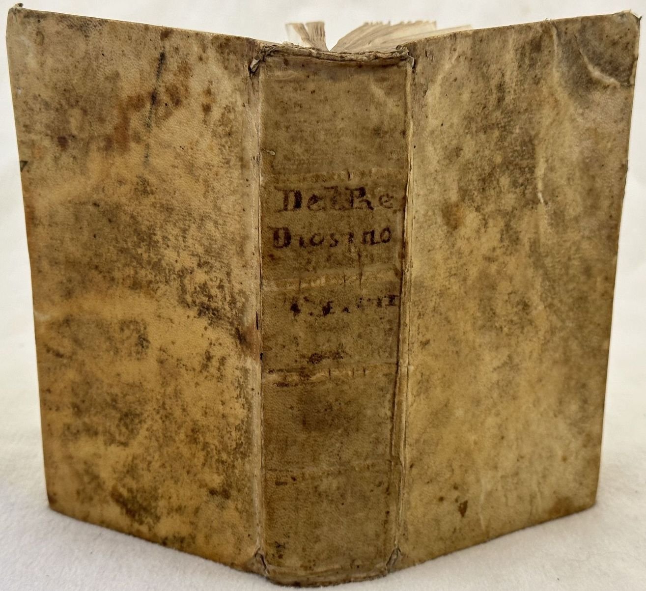 Edizione del 1718 di questa opera del letterato napoletano Andrea Genuzio dell'Accademia degli Erranti sul Re Dioniso dell'Antico Egitto. Interessante opera sulla storia e costumi dell'Antico Egitto. Antiche note manoscritte alla prima carta bianca. Molto raro. In buone condizioni. Copertina in piena pergamena coeva con titolo manoscritto al dorso in buone condizioni con lievi usure marginali. Legatura in buone condizioni con lievi rotture ai contropiatti. Pagine in buone condizioni generali con fioriture. Piccola parte mancante al frontespizio. In 16. Dim. 16x8 cm. Pp. 576.Edition of 1718 of this work by the letterman by Andrea Genuzio of the Accademia degli Erranti about the King Dioniso of Antique Egypt. Interesting work about the history of Antique Egypt. Antique handwritten notes in the first black page. In good conditions. Full parchment coeval cover with handwritten title in the spine in good conditions lightly worn in the extremities. Binding in good general conditions with light cracks in the endpages.Inside pages are in good conditions with foxing. Little missing parts in the title page. In 16. Dim. 16x8 cm. Pp. 576.<BR><BR>