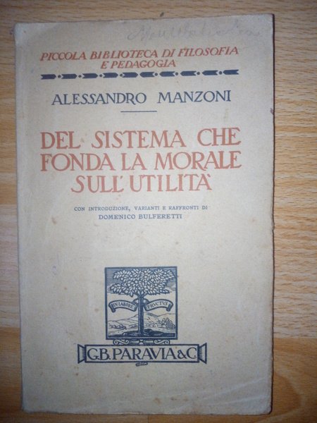 Del sistema che fonda la morale sull'utilita' Con introduzione, varianti e raffronti di Domenico Bulferetti. ( Appendice alla morale cattolica )