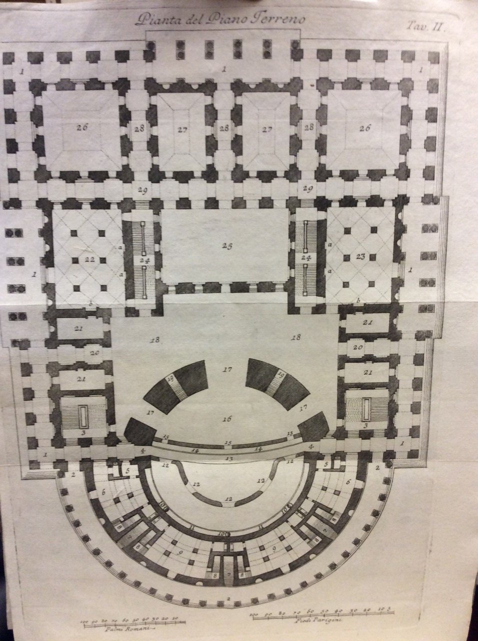 In-8 gr. (mm. 273x200), cartoncino rustico coevo (dorso e risg. rifatti), pp. VIII,100, marca tipografica inc. al frontesp.; dedica dello stampatore al Conte Algarotti; illustrato fuori testo da 6 belle tavole inc. in rame da S. Giampiccoli (ripieg.) relative a piante, spaccati e all'intero edificio del Teatro e di altri luoghi annessi per i giuochi ginnastici. "Seconda edizione", apparsa anonima (la prima è del 1772 e fu sequestrata).Cfr. Cicognara,764/66: Questa ristampa fu ricorretta e mutilata dall'A. in più luoghi, altrimenti non ne sarebbe stata permessa la stampa. La maggior parte del libro non versa sul teatro materiale, ma svolge una serie di idee politiche, critiche, e letterarie che in Italia facevano paura in quel tempo e che caratterizzano l'autore come un pensatore dei più forti e indipendenti che abbia avuti quel secolo - Berlin Kat.,2793 - Fowler,196 in Nota.Tavole ben conservate; testo con lievi arross., fiorit. o aloni ma complessivam. discreto esemplare a pieni margini.