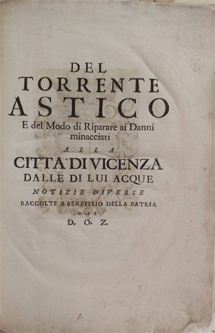 DEL TORRENTE ASTICO e del Modo di Riparare ai Danni minacciati alla città di Vicenza dalle di lui acque. Notizie diverse raccolte a benefizio della Patria dal D. O. Z. S.l.n.d. [al fine Padova,