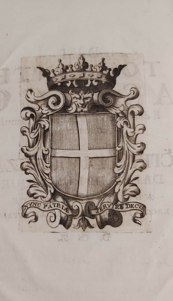 in-4, pp. 40, rileg. mod. m. perg. con doppio tass. al d., angoli, piatti in carta marmorizz. Con gr. stemma della città di Vicenza inc. in rame al verso del front. L’opera più importante dello scrittore vicentino molto apprezzata dal Senato Veneto che lo invitò a Venezia per uno studio sul lido. A pag.36, con numerazione continua, è incluso il testo di Domenico Guglielmini "Visita del terrente Astico che scorre sul vicentino territorio" datato 1710. Rumor III, p. 353-354. Foderatura piccola angolo bianco inf. destro. Ottimo esempl. su carta forte. [329]