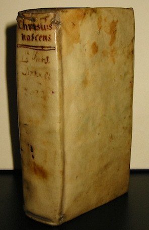 12mo (cm. 11,5), 12 cc.nn., 390 pp., 1 c.nn. (di 3, assenti le ultime 2 carte bianche). Frontespizio interamente inciso su rame. Legatura coeva in pergamena con titolo manoscritto al dorso. Tagli scuri. Ottimo esemplare. Come indicato all’occhietto è questa la prima Parte ‘Christus Iesus, nascens’, che costituisce una pubblicazione a sé stante rispetto alle altre due Parti menzionate nel frontespizio.