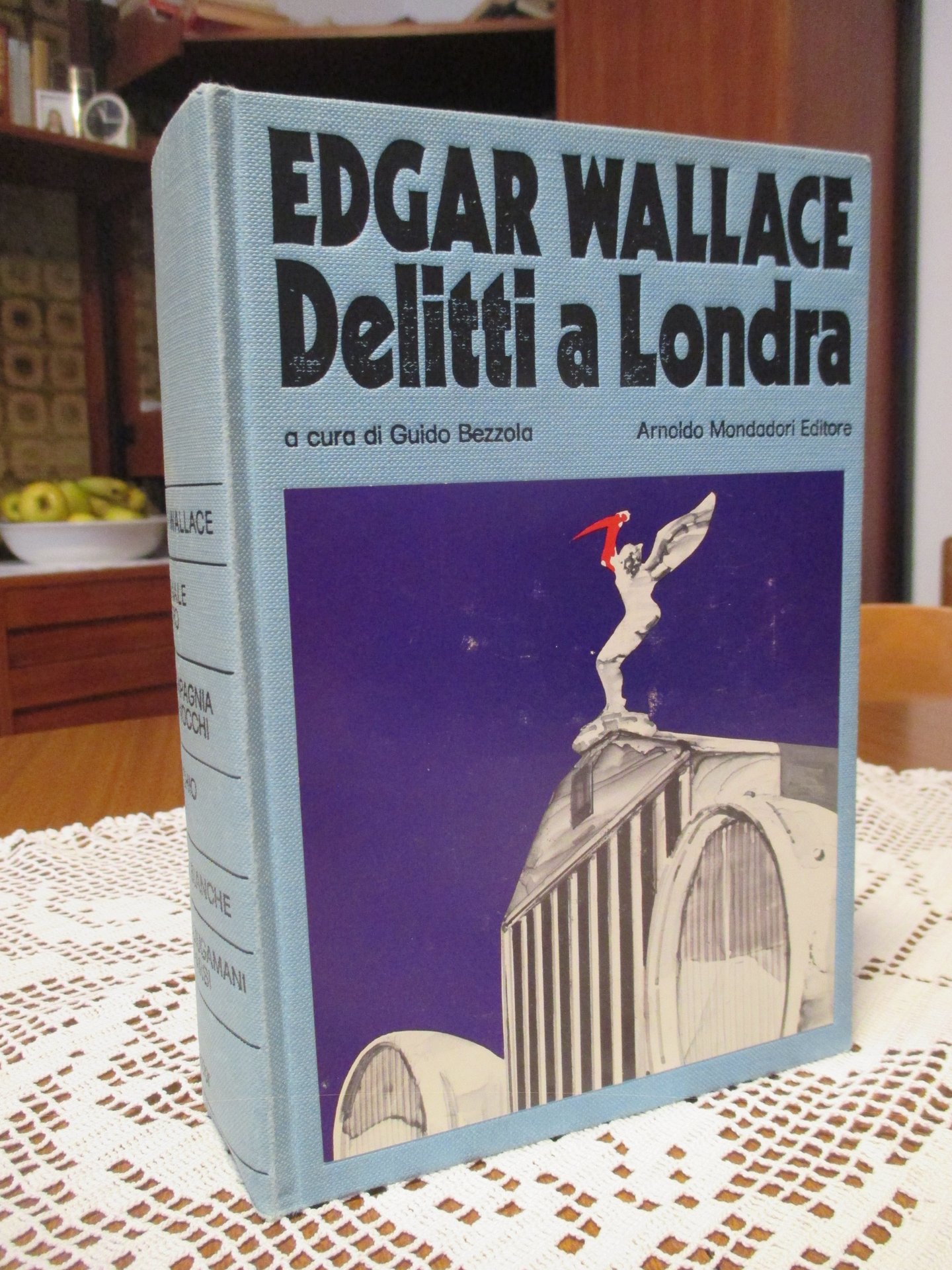 In – 8vo, legatura editoriale con illustrazione applicata al piatto, pp. 579 ( 5 ). Prima edizione. A cura di Guido Bezzola. Collana “ Omnibus Gialli “. Copertina e risguardi illustrati da Ferenc Pinter.