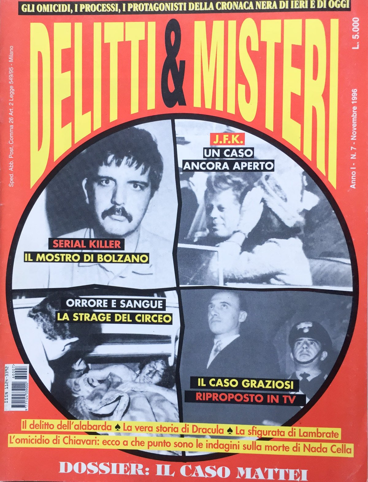 Anno I, n. 7 novembre 1996. Gli omicidi, i processi, i protagonisti della cronaca nera di ieri e di oggi. Ill. in nero nel testo. 940 � Ba In Quarti ( 24-30cm ) Ottimo (Fine) Ottimo