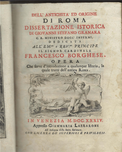 Dell'antichità Ed Origine Di Roma Dissertazione Istorica Di Giovanni Stefano Granara C.R. Ministro Degl' Infermi Dedicata All'eminentissimo E Reverendissimo Principe Il Signor Cardinale Francesco Borghese Opera Che Ferve D'introduzione A Qualunque Istoria, La Quale Tratti Dell'antica Roma