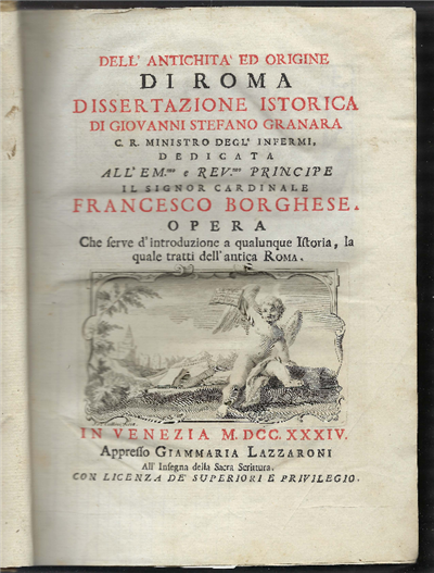 Dell'antichità Ed Origine Di Roma , Dissertazione Istorica Di Giovanni Stefano Granara C.R. Ministro Degli Infermi, Dedicata Al Card. Francesco Borghese