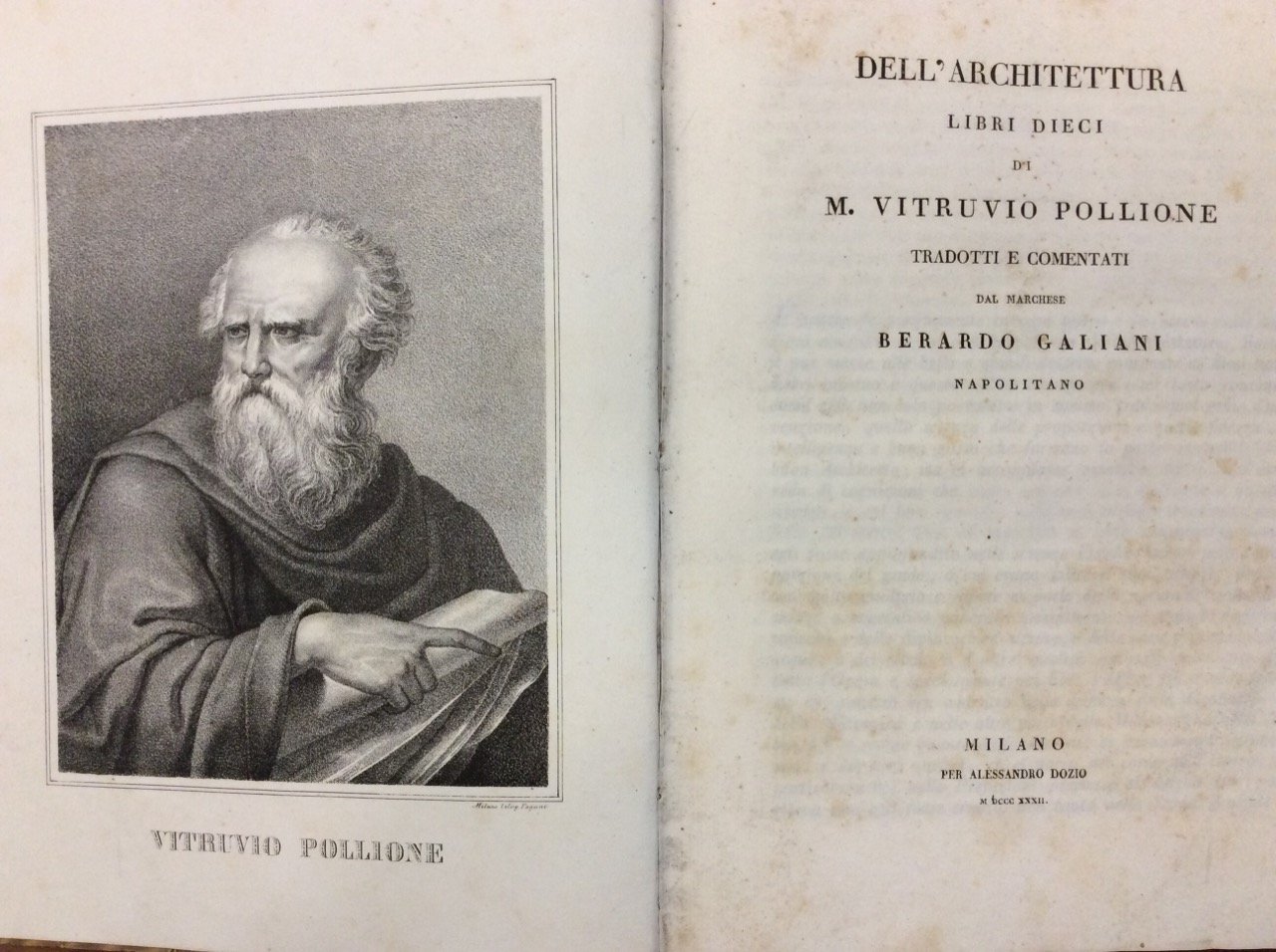 DELL'ARCHITETTURA LIBRI DIECI. - Tradotti e comentati dal Marchese Berardo Galiani.
