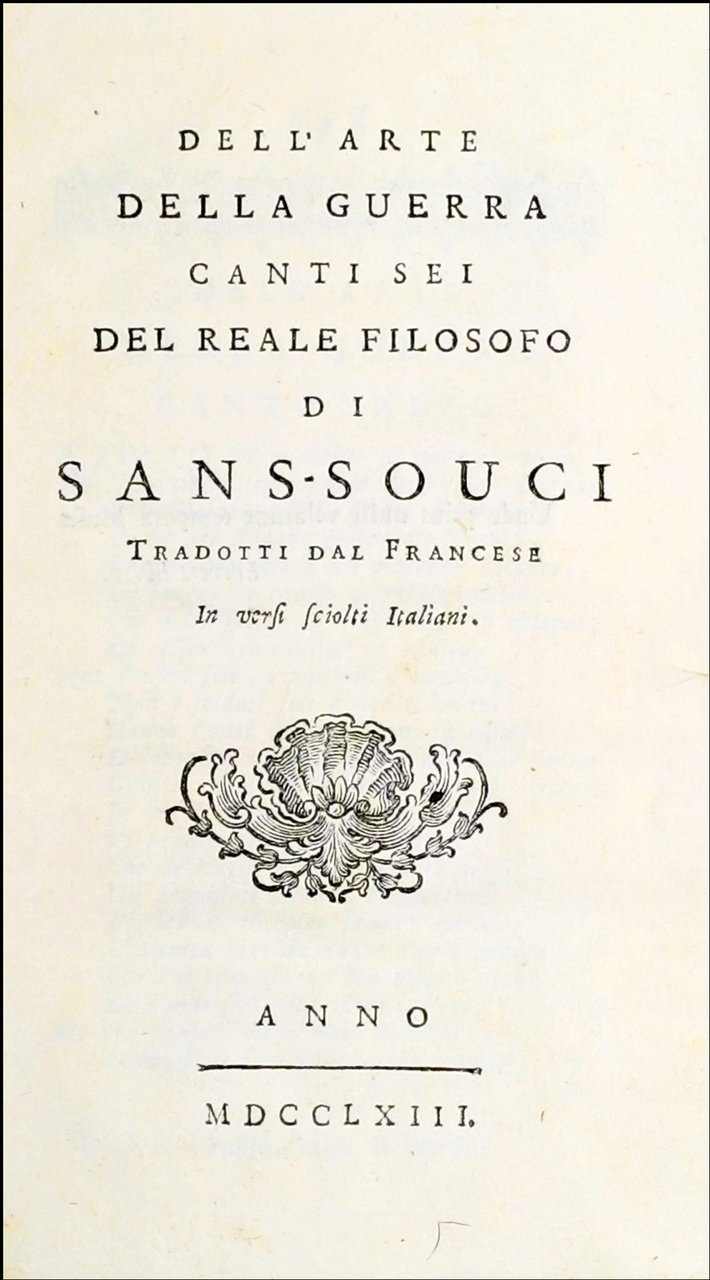 Dell'arte della guerra canti sei del reale filosofo di Sans-Souci. Tradotti dal francese in versi sciolti italiani.