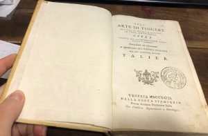 Pagg. 287, legatura in piena pergamena, sguardie rifatte con carta d'epoca, tassello al dorso moderno. Un timbro di vecchia biblioteca al front. e all'ultima carta, qualche sporadica fioritura, per il resto molto buono. Mis. 190x120