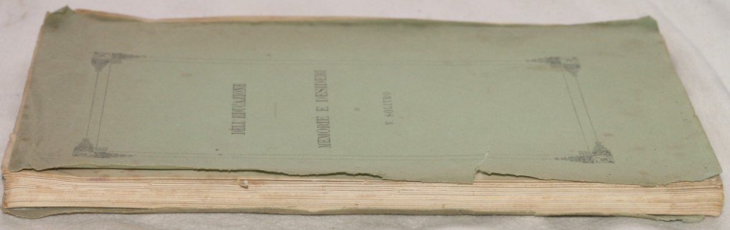 In 8. Dim. 23,5x15,5 cm. Pp. 164. Prima edizione del 1866 di questo interessante testo di pedagogia, educazione dei bambini e scuola di Solitro. Opera quasi mancante di legatura ma nessuna pagina mancante. L'opera era diretta ai maestri, ai genitori ed alle istituzioni. Brossura editoriale in cattive condizioni generali con lievi usure ai margini; dorso assente e piatti staccati. Legatura quasi assente. All'interno le pagine si presentano in ottime condizioni con fioriture. First edition of 1866 of this interesting text of pedagogy, education of children and school by Solitro. Almost boundless, but no page is missing. The work was directed to teachers, parents and institutions. Editorial cover in bad general conditions slightly worn in the edges; spine missing and detached plates. Binding almost absent. Inside pages are in very good conditions with foxings.