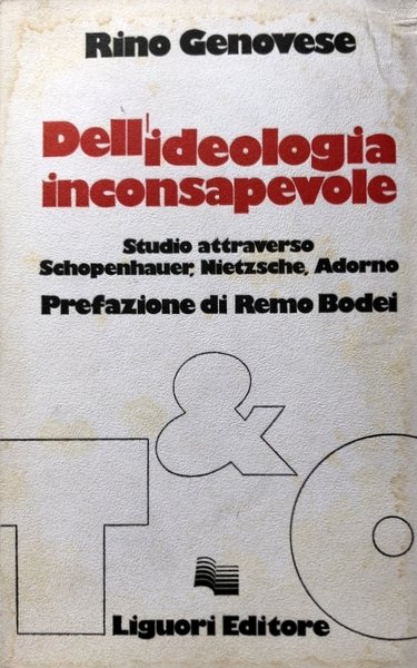 Soggetti: Filosofia antropologica, Etica, Politica, Saggi, Soggettività, Soggetto, Ideologia inconsapevole, Apparenza necessaria, Critica, Nietzsche, Adorno, Shopenhauer, Kant, Gattung, Teleologia, Colpa, Libertà, Dialettica negativa, Causalità, Teoria dell'arte, Socrate, Verità, Fenomenismo, Istinto del gregge, Specie, Volontà, Retorica, Verità, Impensato, Mito, Morte, Eterno ritorno, Riconoscimento, Piccolo uomo, Differenza, Dominio, Immagini, Pulsioni, Odradek, Teoria dei sistemi, Nichilismo, Libri Vintage, Fuori catalogo, Filosofi italiani del XXI secolo, Anthropological Philosophy, Ethics, Politics, Essays, Subjectivity, Subject, Unconscious Ideology, Required Appearance, Criticism, Teleology, Guilt, Freedom, Negative Dialectics, Causality, Theory of Art, Socrates, Truth, Phenomenalism, Instinct of the Flock, Species, Will, Rhetoric, Truth, Unthought, Myth, Death, Eternal, Recognition, Little man, Difference, Dominance, Images, Pulsions, Systems theory, Nihilism, Out of print books, Italian philosophers of the 21st century